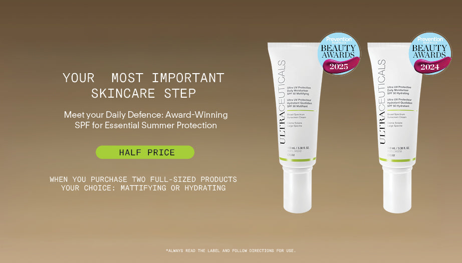 Add 2 full-sized products to your cart, and an in-cart pop-up will appear allowing you to choose a half-price Hydrating or Mattifying SPF50. One half price SPF per order.